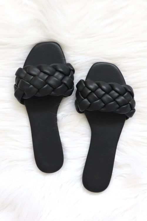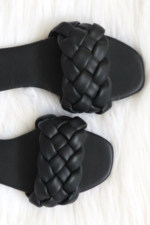 Braided slides. Gorgeous woven band across the top. Chic and beautifully detailed. Effortless and comfortable, and goes with any look!
