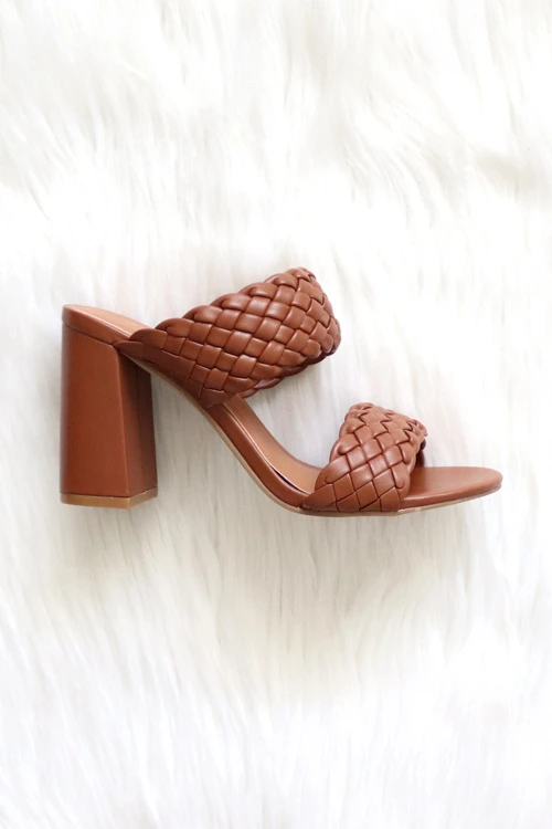 Chunky Braided Woven Heels-Tan Brown