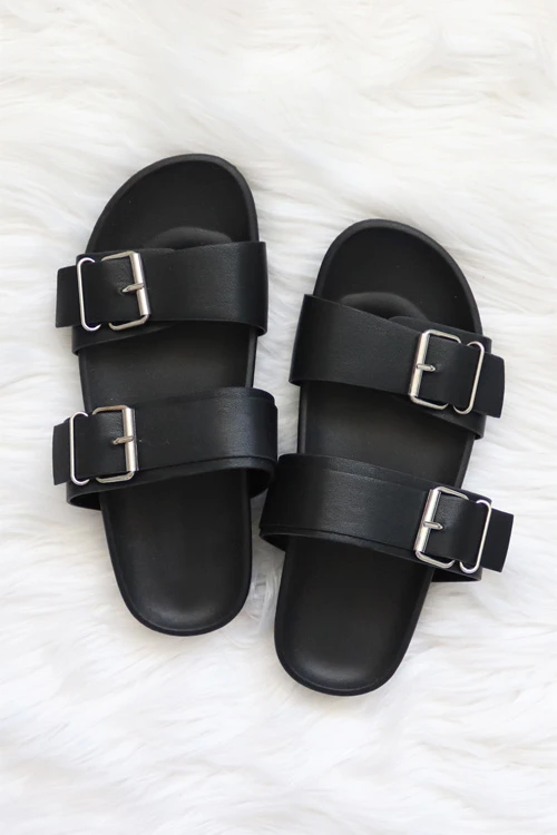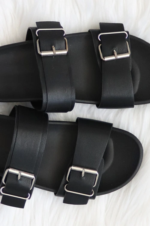 Double strap sandals with buckle detail. A stylish every day sandal that goes with any outfit. Comfortable and stylish!