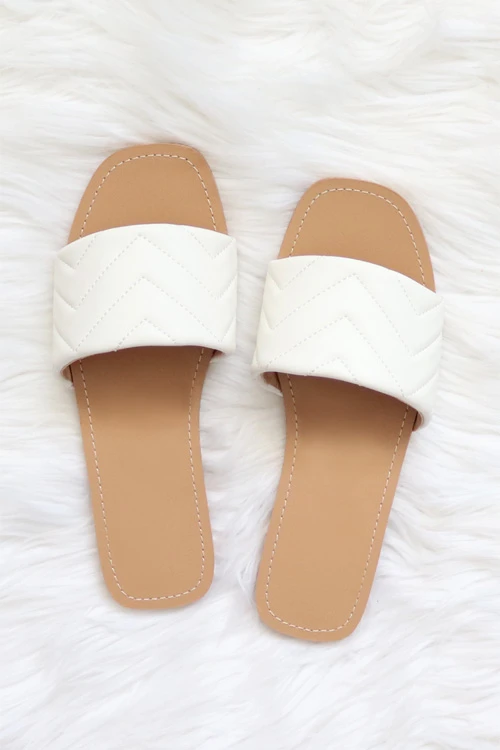 Quilted sandals. Single band across the top with a quilted design. Simple and chic. These will be your go to sandals all summer long. Easy slip on style and stylish design.