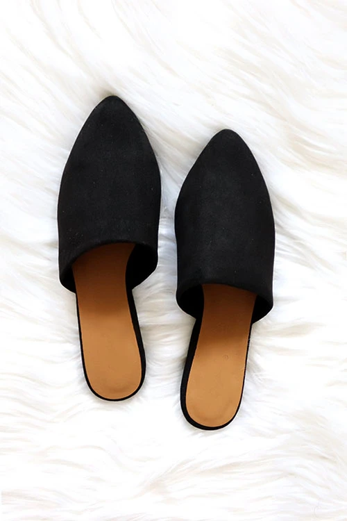 Faux Suede Pointy Toe Closed Toe Flat Mules Sandals Slides-Black