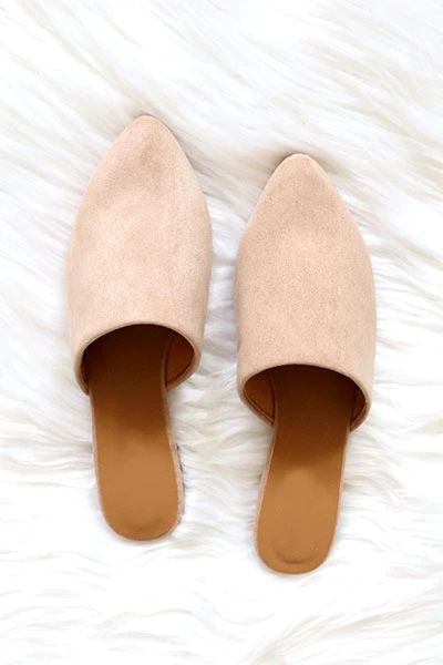 Faux Suede Pointy Toe Closed Toe Flat Mules Sandals Slides-Taupe