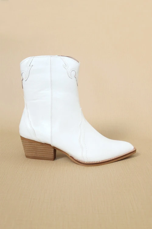 High top western boots. Low wooden block heel. Side zipper closure. Subtle and simple western detailing makes these the perfect pair of cowboy boots to dress up or down!