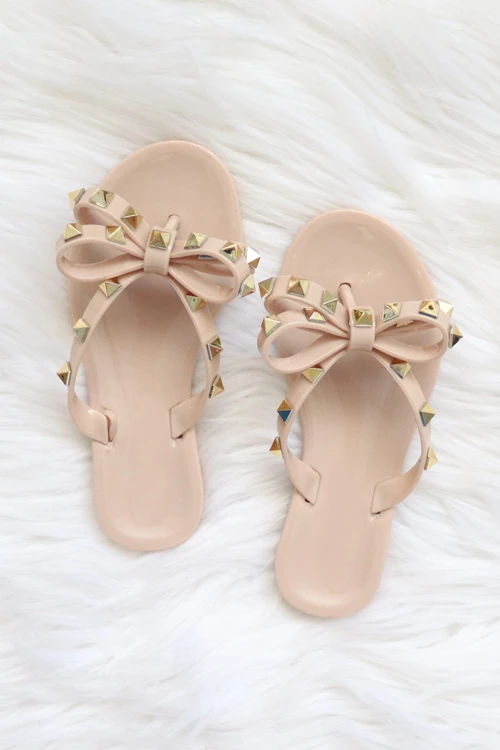 Kids Sandals. Super fun flip flop sandals. Jelly material. Adorable bow detail. Studded accent along the straps and bow. These fun shoes add a little flair to any outfit! Perfect with a casual t-shirt and shorts look or a cute summer dress. The best part…these are available in matching adult sizes!