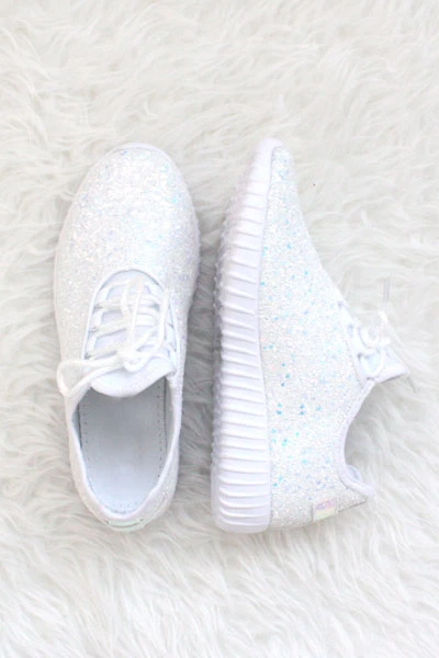 The most perfect pair of shoes that there ever was! Glitter through out adds a sparkle accent to your outfit. Glitter consists of two different sizes for full a high end look. Combined with a casual sneaker design makes a perfect combination. Lightweight and super comfortable. Laces up the front. These definitely do not sacrifice style for comfort because it has both!