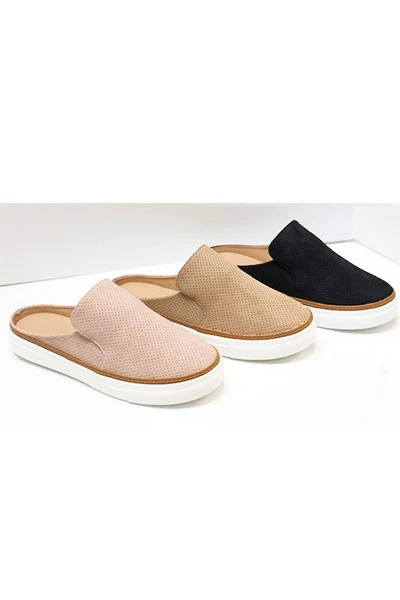 Open Back Perforated Casual Slip On Flat Sneakers Shoes-Oatmeal Nude Beige