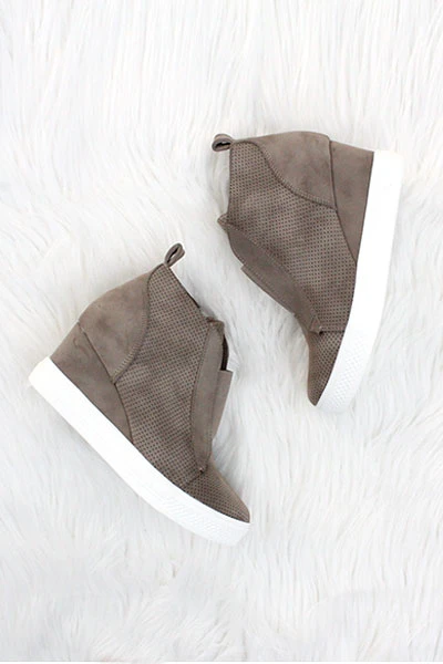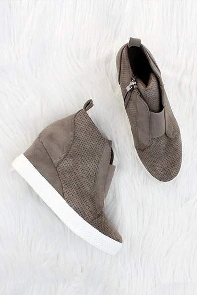 Perforated Wedge Sneakers-Taupe