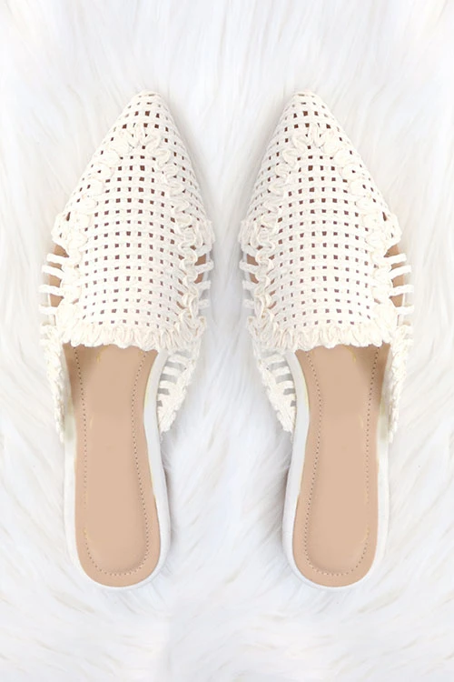 Raffia Pointy Toe Closed Toe Flat Mules Sandals Slides-White
