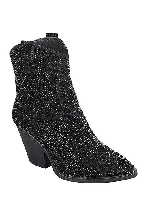 Rhinestone Cowgirl Western Booties Cowboy Boots-Black