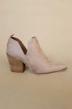 Ankle Slit Side Cutout Closed Toe Booties With Block Heel-Taupe