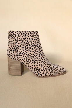 Closed Toe Ankle Booties With Wooden Block Heel-Leopard Print