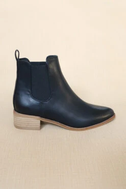 Faux Leather Chelsea Ankle Booties With Low Wooden Heel-Black