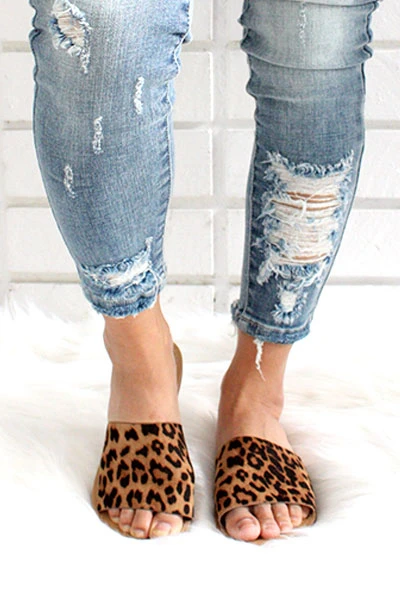 Single Band Animal Print Sandals Slides-Leopard Print