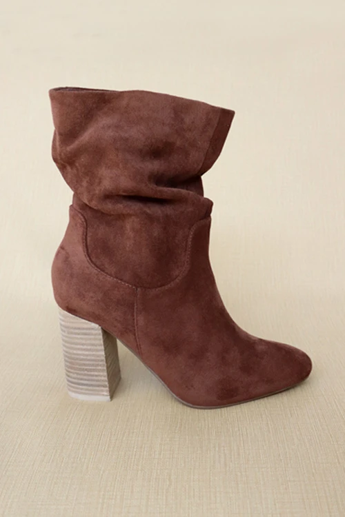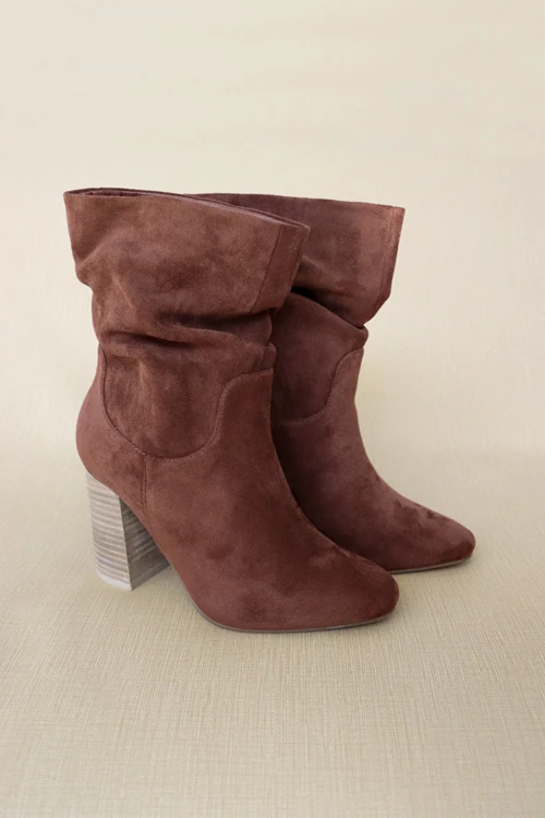 Slouchy Closed Toe Boots With Block Heel-Chestnut Brown