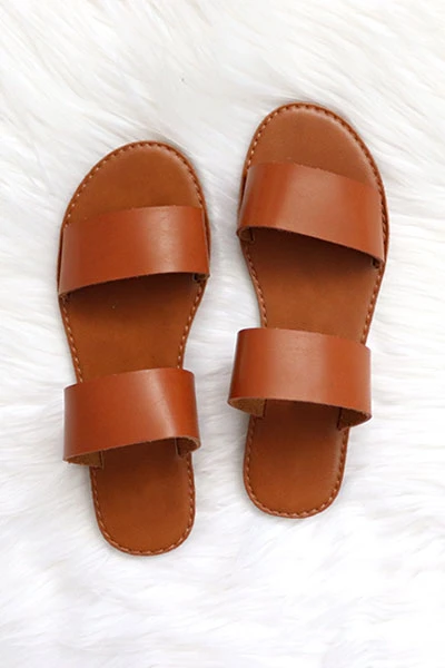 A basic and chic pair of sandals that can be worn every day! Two bands across the top. Open Toe. Flat Sole.