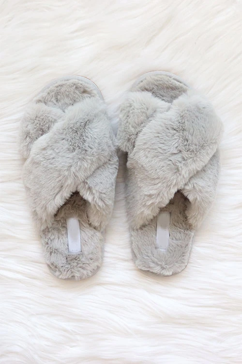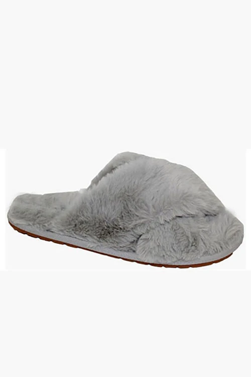 X Cross Band Cozy Fur Slippers Slides-Grey